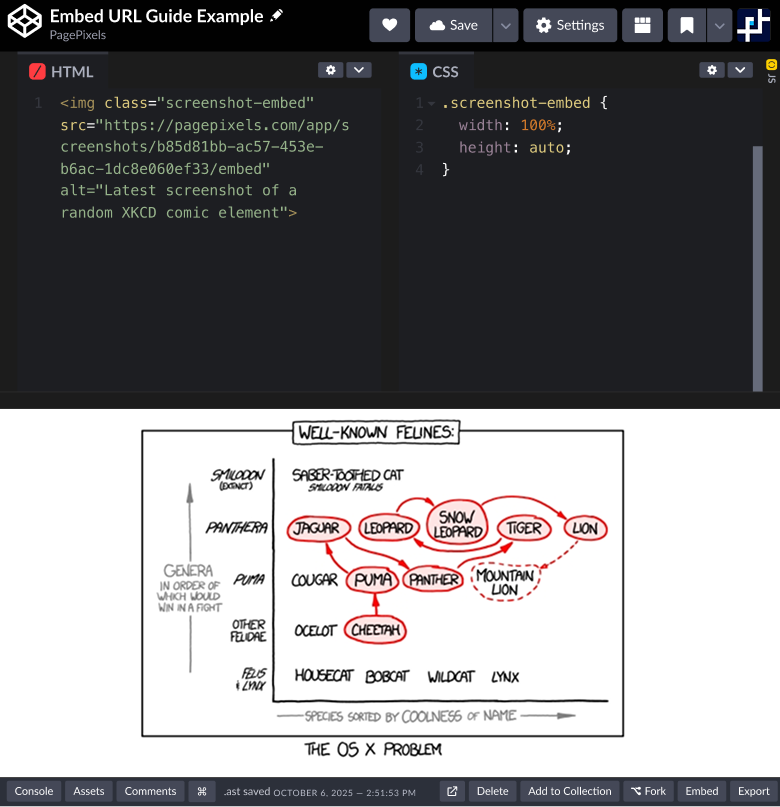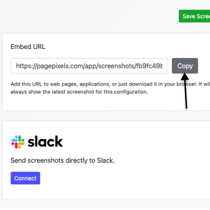 A PagePixels Embed URL is a single, unchanging link that always displays the most up-to-date screenshot associated with your configuration as an image.