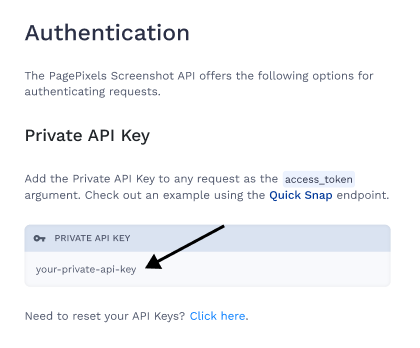 Go to the Private API Key section and copy your key.