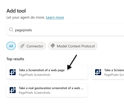 With the PagePixels Screenshots tool in Copilot Studio, you can give your agents the power to take screenshots of web pages.
