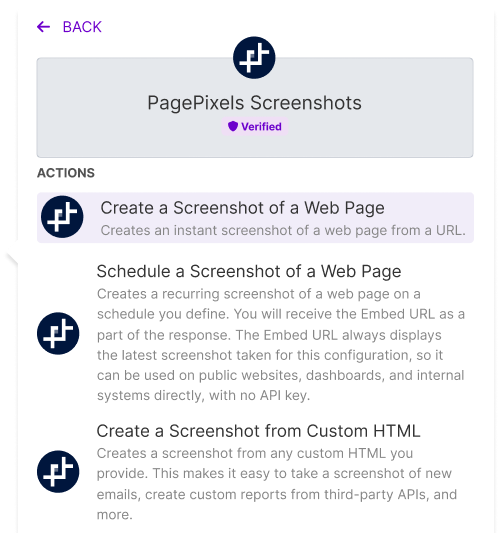 Automate and integrate screenshots in your Make.com automations with the PagePixels Screenshots Make app.
