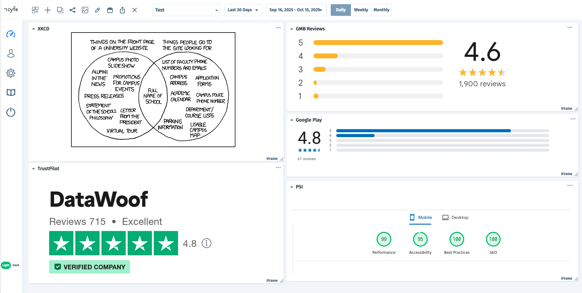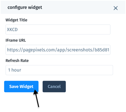 PagePixels is free to start and this tutorial demonstrates how you can take daily screenshots of a random XKCD comic and display the image in your Cyfe dashboard.