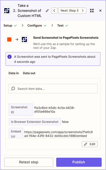 With the PagePixels Screenshots Zapier app, you can convert data from thousands of apps in Zapier into screenshots, including your Excel data.