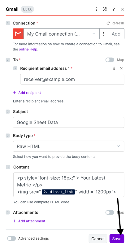 Once you've set up your Custom HTML screenshot automation in Make, you can connect it to thousands of apps Make.com supports, like Google Drive, Discord, and Gmail.