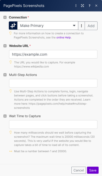 PagePixels and Make are free to start, and this tutorial demonstrates how to take automatic screenshots of a website and post the images to a Discord channel.