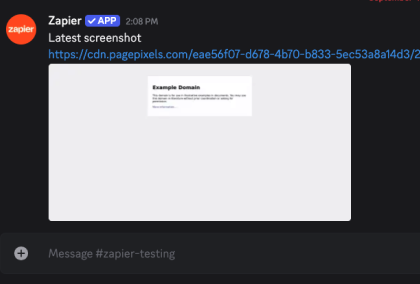 Using the PagePixels Screenshots Zapier app, you can automatically take screenshots and send the images to thousands of services, including Discord.