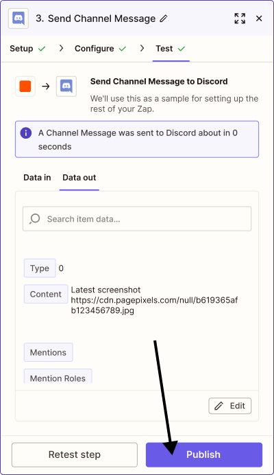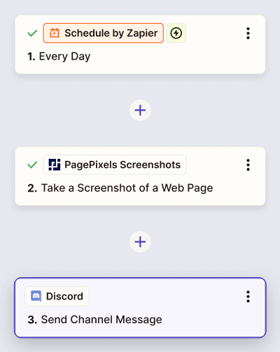 PagePixels and Zapier are free to try, and this tutorial demonstrates how to take daily screenshots of a web page and send the images to a Discord channel.
