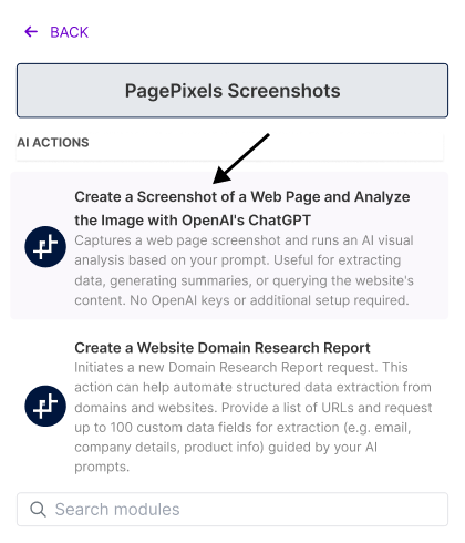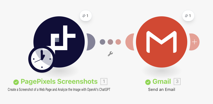 To accomplish this, you can use PagePixels' Create a Screenshot of a Web Page and Analyze the Image with OpenAI's ChatGPT Action in Make. This Action captures web pages and sends the screenshots to OpenAI (creators of ChatGPT) for visual analysis guided by your custom text prompts.