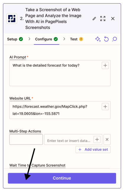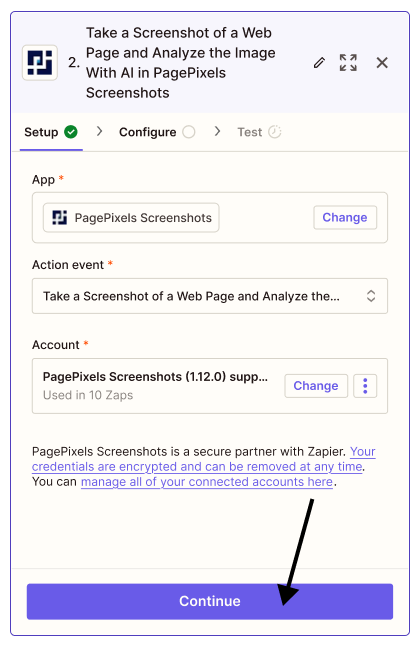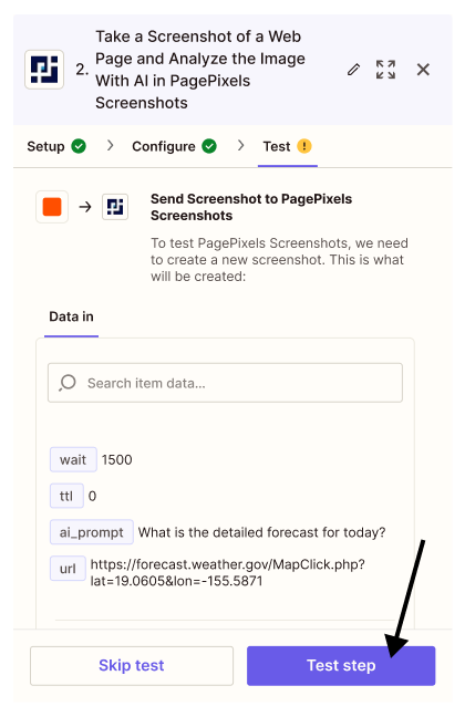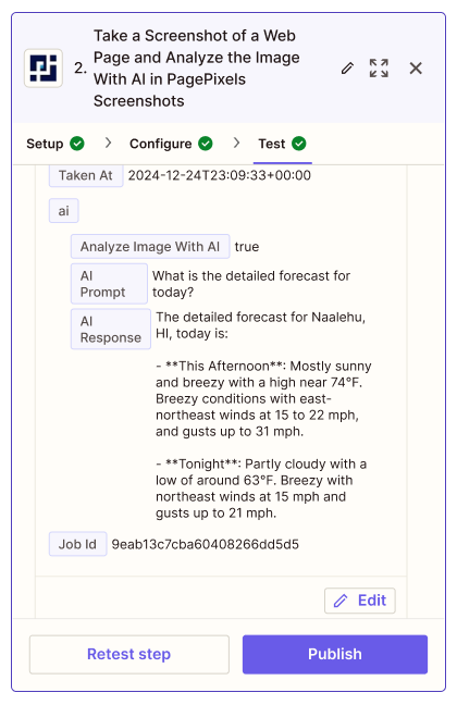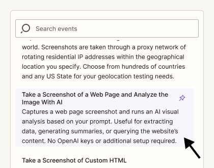 Using the PagePixels Screenshots Zapier app, you can easily automate screenshots and run AI-powered analysis on the captured images.